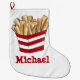 Holiday stocking features an original marker illustration of a red-and-white striped carton of tasty fast food french fries. Simply personalise with your name for a unique Christmas stocking!