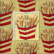Fabric features a carton of fast food French fries on a pale yellow background. Created from an original marker illustration.