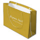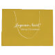 A golden colour gift bag with French and English Merry Christmas writing on it. The French version says "Joyeux Noel!" which means Merry Christmas!