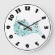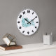 For any one into music or playing an instrument this design of a french horn is perfect. The design has a french horn with musical notes over it. The french horn is see through and is done in a light blue colour. This french horn design looks great on this clock. Perfect for yourself or as a gift
