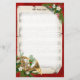 This Christmas stationery features a vintage sheet music scroll in the background, with a decorated french horn in the lower left corner, and festive pine sprig accents at the top of the scroll. The edges are simulated red metallic, and the centre is faded for easier writing.