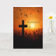 This lovely sympathy greeting card features a cross silhouette with the sun setting over a meadow of summer grasses, and birds in flight to create a touching image in the French language of; "My sincere condolences. You are in my thoughts and in my heart."