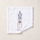 Elevate your daily routine with the refreshing essence of nature, as sprigs of herbal lavender delicately grace the bath towel on a lilac background. Embellish the hand towel with a monogram, which has a charming mason jar adorned with a ribbon and filled with the herb.