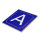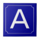 Patterned after French street signs and address numbers. Narrow white border with reverse circle filets at the corners. Dark blue background. Ceramic number tiles. You customise with the numbers or letters you need for your ceramic tile or mosaic sign. Number tile for weather proof signs, house numbers