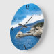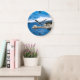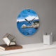 Beautiful wall clock with a marine theme, featuring an original photograph of a little red lighthouse over a white cliff in Bastia, Corse (France), under a stormy sky on a summer day.