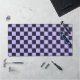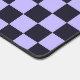 A checkerboard pattern with alternating lavender and black squares fills the image. The repeating geometric design gives a balanced and rhythmic appearance.