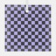 A checkerboard pattern with alternating lavender and black squares fills the image. The repeating geometric design gives a balanced and rhythmic appearance.