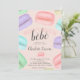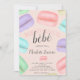 Bienvenue Bebe! A french themed baby shower with modern elegant calligraphy typography, with hand painted pastel macarons dessert with gold and rose gold glitter in pink, lavender, green, teal and yellow. All the elements are moveable to your desired positions. A cute macaroons stack at the back!.