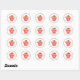 A sticker featuring a vintage inspired illustration of colourful French Macarons in a delicate red teacup.  Illustration is surrounded by decorative brown and red circles. Personalise with the letter of your initial.