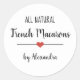 Modern "French macarons" sticker with a black font on a simple white background embellished by a cute red heart. Customise text.