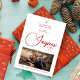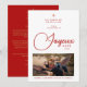 French Modern Joyeux Noël Snowflake Photo in Red and faux Gold Holiday Card with Envelope.