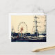 Taken from a boat sailing down the Seine river in France, this picture shows the commotion of a summer festival including many tall ships and crowd-pleasing amusements like Ferris wheels. Set in a nostalgic wash.
