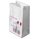 French Patriotic design . It features the Eiffel Tower and the principles of equality, citizenship and inalienable rights.It is designed in the colours of the national flag of France .Graphic design by Alma Wad .Front and back design . You can customise this gift bag with your own text /logo now .