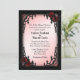 Amazingly beautiful and unique gothic / Victorian design wedding invitation. An iron scrolled rose ensconced frame complete with black candelabra. This is just one of the colours available for a pink colour scheme. Add the name of bride and groom on back along with the date.