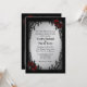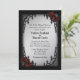 Amazingly beautiful and unique gothic / Victorian design wedding invitation. An iron scrolled rose ensconced frame complete with black candelabra. This is just one of the colours available for an silver iron colour scheme. Add the name of bride and groom on back along with the date.