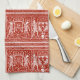 French Red and White Mediaeval Pattern Monogram H Tea Towel
