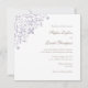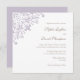 Chic and elegant French regency purple fleur de lis pattern wedding invitation design. Detailed fleur de lis corner pattern in wisteria purple. Customise with your names and your wedding information in dark taupe lettering.