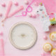 A delicate scrollwork frame, textured in faux gold foil with an ivory background, decorates this elegant paper plate to hold your names and wedding date. Choose any border colour or leave the soft blush we've supplied. Search ID870 to see the complete wedding collection and other colour choices for this design.