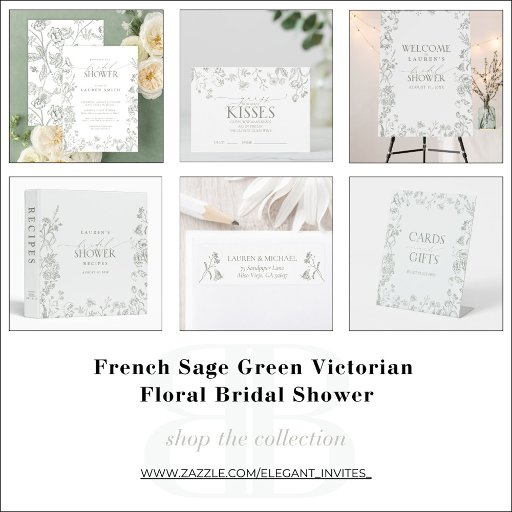 French Sage Green Victorian Floral Bridal ShowerDesigned by ANASTASIA SURRIDGE, Creative Director