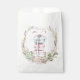 This charming watercolor paper favour bag features stacks of soft pastel blue and pink macarons tied with a sweet bow, and elegant floral wreath, this design sets the tone for a stylish French-inspired party. Ideal for a baby showers, birthday parties or bridal showers with french theme that’s both romantic and chic.