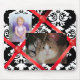 Lovely custom mouse pad done in a French bulletin board look, with a background of black and white damask, and red ribbons and buttons. Personalise this great mousepad with your favourite photographs, or make one as a gift. Great for home or your office everyone will love it.