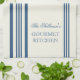 Blue and Cream White French Style Stripe Personalised Kitchen Towels. Personalise all text as you desire. Click "customise" to resize text or change font styles.