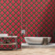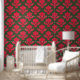 Intricate red flourishes on dark green background. Perfect for adding classic European charm to accent walls, powder rooms, nurseries, or sophisticated event decor, this wallpaper offers a bold yet graceful statement. Its vintage textile pattern and modern colour palette make it an ideal choice for those who love refined style with a contemporary twist.