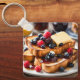 The key chain is made of metal and really sturdy. The flower design is really cheerful. The logo and colors are clear and crisp!