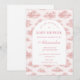 Celebrate a timeless and romantic baby shower with this elegant pink toile design, featuring delicate vintage countryside illustrations in soft blush tones. The refined arch layout creates a beautiful focal point for your event details, blending classic European charm with a modern, feminine aesthetic. Perfect for a chic, storybook-inspired celebration, this design feels both graceful and effortlessly sophisticated—ideal for creating a memorable and stylish gathering.