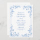 Delicate blue and white wildflower florals placed in the corners give this bridal shower invitation a refined, timeless look. Inspired by French toile and Hampton style design, this vintage floral invitation blends Victorian elegance with subtle chinoiserie details. A beautiful choice for elegant bridal showers, this blue and white wildflower design offers classic charm with a soft, sophisticated aesthetic.