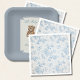 Add a touch of charm and nostalgia to your table setting with these vintage teddy bear paper napkins, featuring soft watercolor dusty blue french toile floral background. Perfect for baby showers, first birthdays, and little boy celebrations, these elegant disposable napkins blend timeless design with modern convenience.