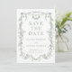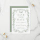 Announce your special day with this French Victorian sage green wedding Save the Date. Ornate vintage inspired detailing blends with a soft sage palette to create a refined and romantic look. The balanced layout ensures clear readability and a polished, print ready finish that beautifully complements classic and elegant wedding themes.