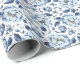 French Vintage Blue Floral Pattern Wrapping Paper