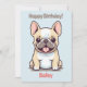 Cute Frenchie, French Bulldog, puppy bulldog. Happy birthday, editable name. Design for pet lovers, dog lovers, pet parents.