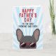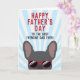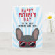 Frenchies, this french bulldog Father's day card will make your Dad's day. The design features an illustration of a cool looking blue coloured french bulldog wearing red sunglasses with the wording "Happy Father's Day to the best Frenchie Dad ever!" written on the front. The inside of the card reads "To Dad, I love you more than treats" but can be changed to the wording of your choice.