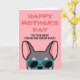 Frenchies, what better way to show your Mum how much you love her this Mother's Day with a personalised card just from you! The design features a cartoon style illustration of a lilac and tan coloured french bulldog wearing blue sunglasses with the wording "Happy Mother's Day to the best Frenchie Mum ever!" written on the front. The inside of the card reads "To Mum, I love you more than treats" but can be changed to the wording of your choice. Different coloured french bulldog versions are also available.