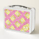 This is a standard metal lunchbox that appears to work just fine. We designed this box ourselves with an uploaded photo and custom text on the front and back. It looks absolutely beautiful except the front of the lunchbox is not centered like it shows in the photo. The print borders don't align with the inset flat part of the box where the preview photo online showed it perfectly centered in there. The back looks nice and centered though.