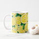 A refreshing and summery design featuring a seamless pattern of lemon slices and leaves on a crisp white background. Perfect for foodies and lovers of citrusy freshness!