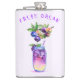 Well made flask, a little better than I had expected. Flask came in clear plastic box which gave it a nice presentation when I took it out of the zazzle packaging. Image is not printed on flask but on sticker. Don't know how this will hold up I haven't used it yet. This would make a Great gift! I plan to purchase more for friends! Cheers. I thought a little brighter than computer. Very crisp, writing wasn't