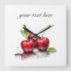 Fresh Cherry Trio in Watercolor, custom Square Wall Clock