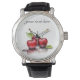 Gift an elegant, unique accessory with this Fresh Cherry Trio in Watercolor Watch for Him. The design, featuring three realistic watercolor cherries, brings a sophisticated, natural touch to the wrist. It’s a perfect personalised gift for a birthday or anniversary. Personalise it with My Sweet Time, Est. 20XX, or Your Name.