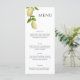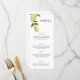 Add a special touch to your wedding with this custom menu. The skinny menu card features fresh citrus illustrations with lemons on a branch and is ready to be customized with your description of dishes in dark brown lettering, and your names and date on the reverse side.