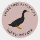 Modern bold orange and black duck fresh free range eggs product label with business details. Easy to personalise handwriting modern typography in teal using the template. Unique duck illustration in bright colours, unique original artwork by artist Catherine Sweetman