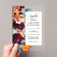 A modern romantic choice in wedding invitations, this design features rich romantic colours of burgundy red, russet orange, blush pink and teal green leaves in a lovely floral border placed to the left of your text. These colours are often used in weddings from mid-summer into fall and through the winter months and print so vividly and beautifully on this unique acrylic invitation. Personalise the text template with your wedding details. Other matching wedding products are available to coordinate with this invitation.