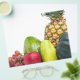 A group of arranged fresh fruits and vegetables isolated over white.