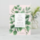 Fresh Greenery Leafy Modern White and Pink Wedding Invitation
