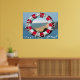 A beautiful view of Gaeta's sea (Italy) on background and its awesome beach in life preserver frame. Fresh souvenir/gift to decorate a wall's corner,choose size as well you prefer!