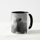 White and black combo mug with black and white photo (portrait) of a cow, shot in Ireland, County Clare.
