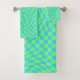 Fresh Light Blue & Green Warped Chequered Pattern Bath Towel Set