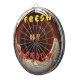 This artwork features the phrase "Fresh My Freddy" arranged within a circular, swirling background that resembles a reflective or liquid surface. The dynamic composition creates a sense of movement, making it an engaging piece for any setting.
